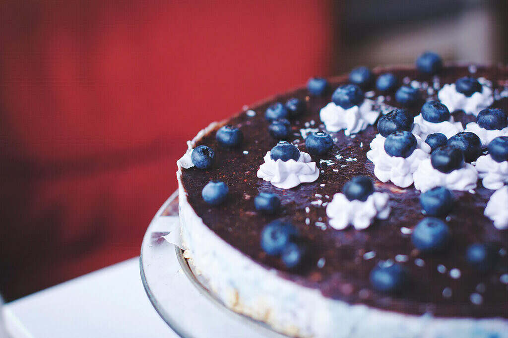 4. Die Heidelbeeren unterheben und auf den vorgebackenen Boden geben.