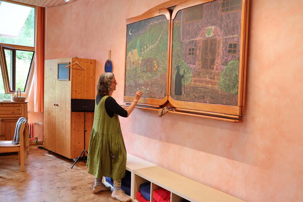 Auch die Lehrkräfte erleben das Tafelbild als Teil ihrer eigenen künstlerischen Auseinandersetzung mit dem Unterrichtsstoff. Das Malen dauert häufig mehrere Stunden und findet oft an Wochenenden oder in den Ferien statt. Es ist ein meditativer Prozess, der hilft, sich tief in das Thema einzufühlen und es muss nicht perfekt sein. Denn diese innere Arbeit spüren die Kinder: Sie merken, wie viel Mühe und Hingabe in einem Bild steckt, und begegnen ihm mit Respekt. Oft achten sie sehr genau darauf, dass niemand etwas verwischt oder beschädigt.